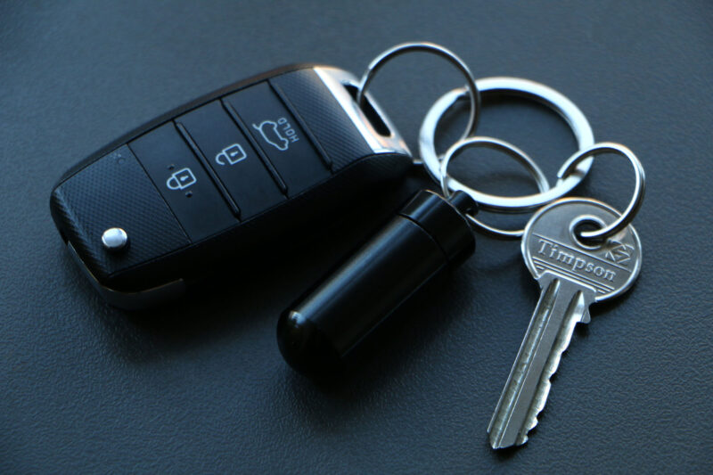 Keyring capsule dimensions: 17mm diameter by 50mm length. Total product weight: 12g.